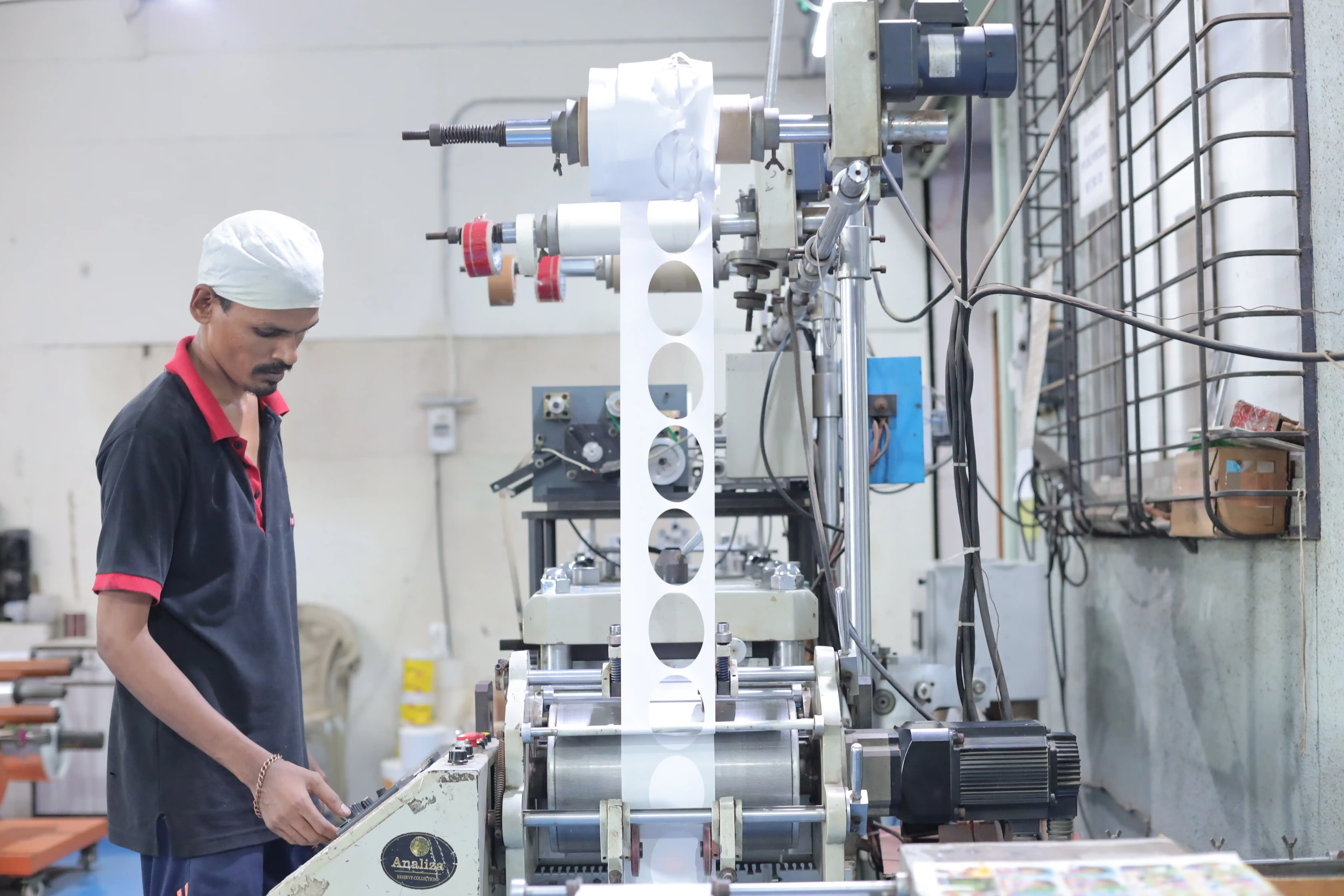 State-of-the-art flexographic printing equipment for high-quality label and packaging production with precision color matching and registration.